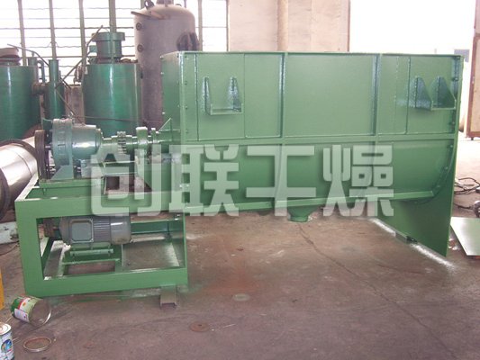 該機型由容器、螺旋攪拌葉片和傳動(dòng)部件組成:螺旋葉片一般做成雙層或三層,外層螺旋將物料從兩側向中央匯集,內層螺旋將物料從中央兩側輸送,形成對流混合。